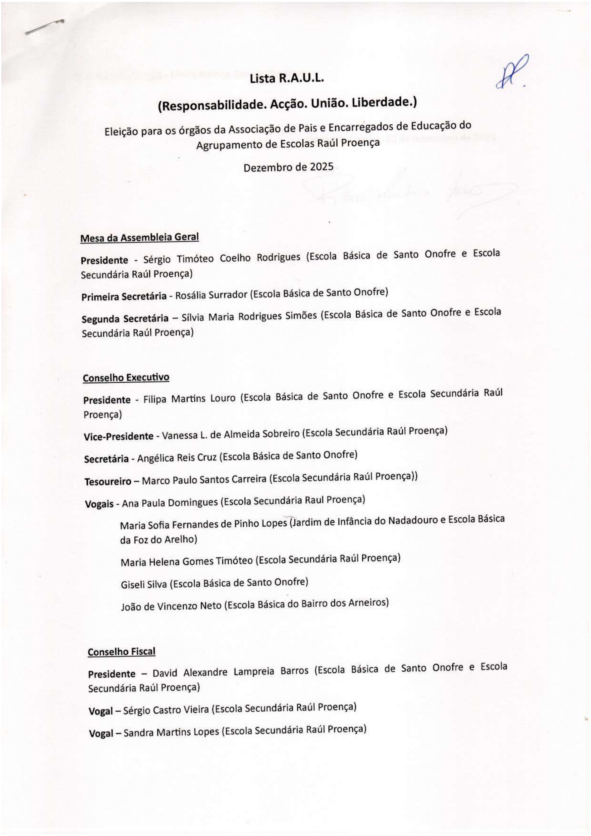 A Associação de Pais e EE do Agrupamento Raul Proença apresenta: